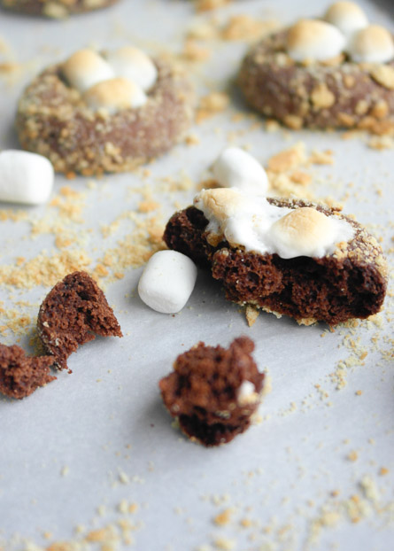 And they turned out great. The graham crackers gave them a little crunch, the cookie was super fluffy and chocolatey, and the marshmallow were a little crispy but still soft and melty. Pure heaven. I recommend you make these. It doesn’t matter that it’s the middle of January because we all need a reminder of summer, and these’ll do it.