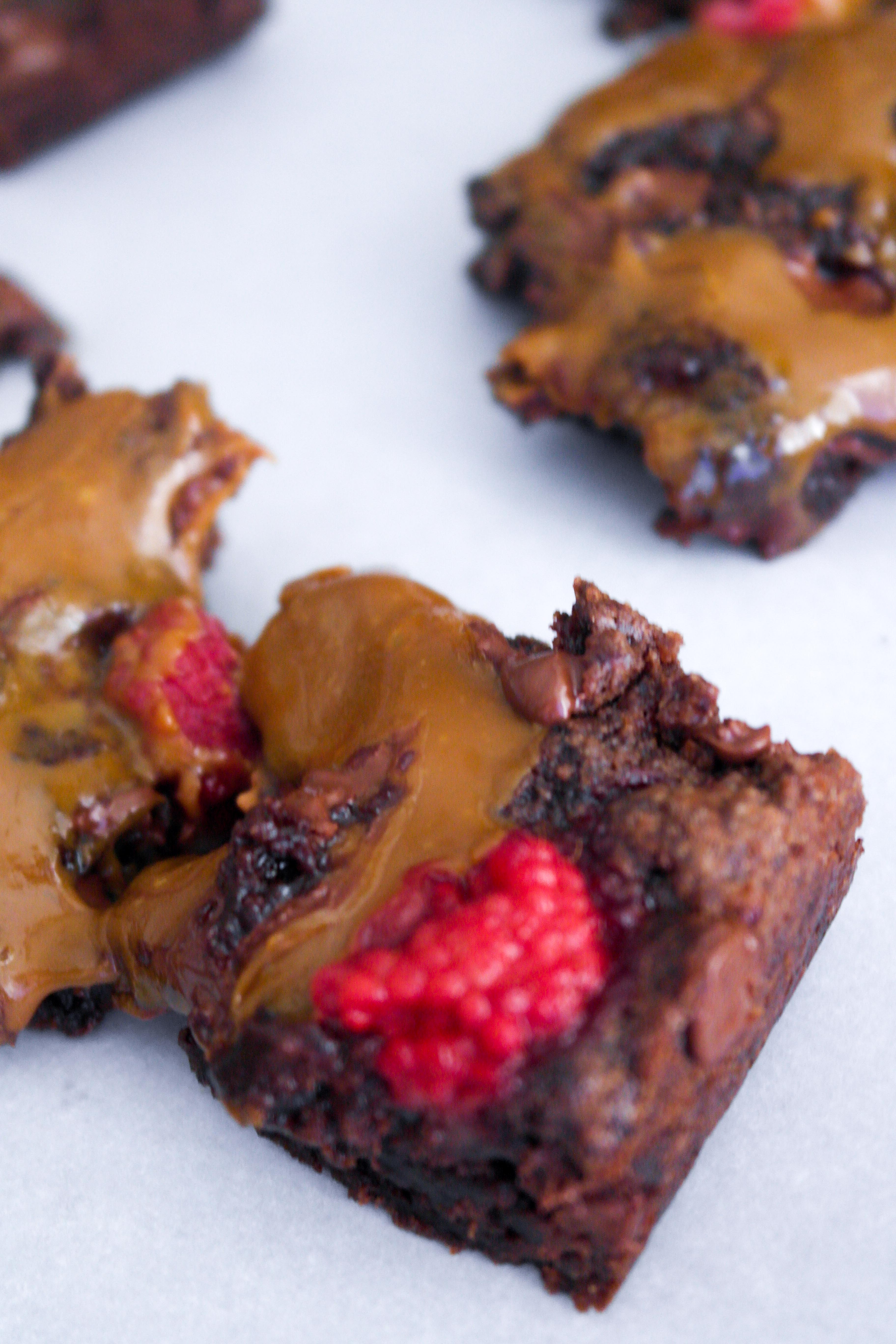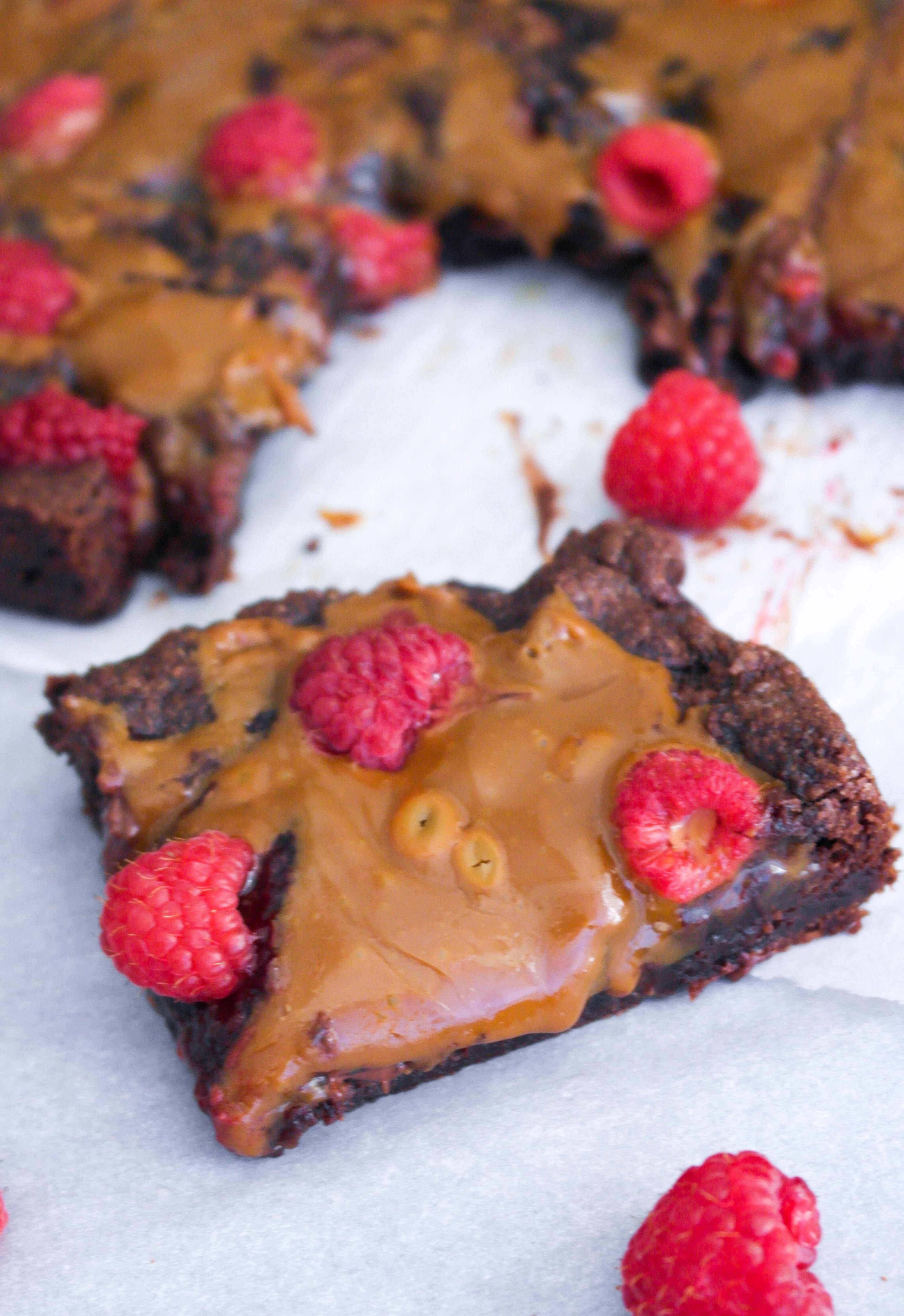Rasperry and dulce de leche are the perfect compliment to rich, fudgy brownies.